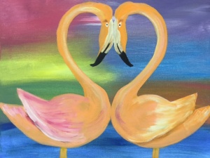 Paint the Love Flamingos. Two people, two canvases to join together for $50. This class starts at 6:30pm. Please arrive 15 minutes early to get supplies.